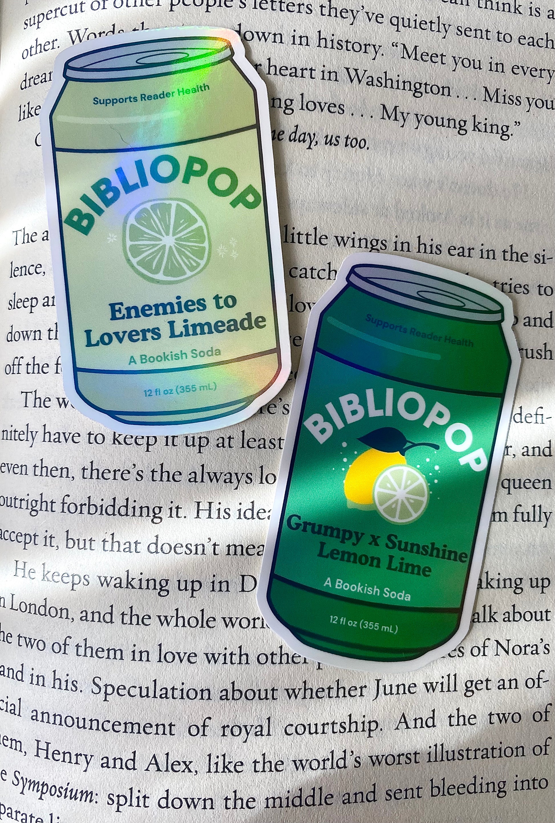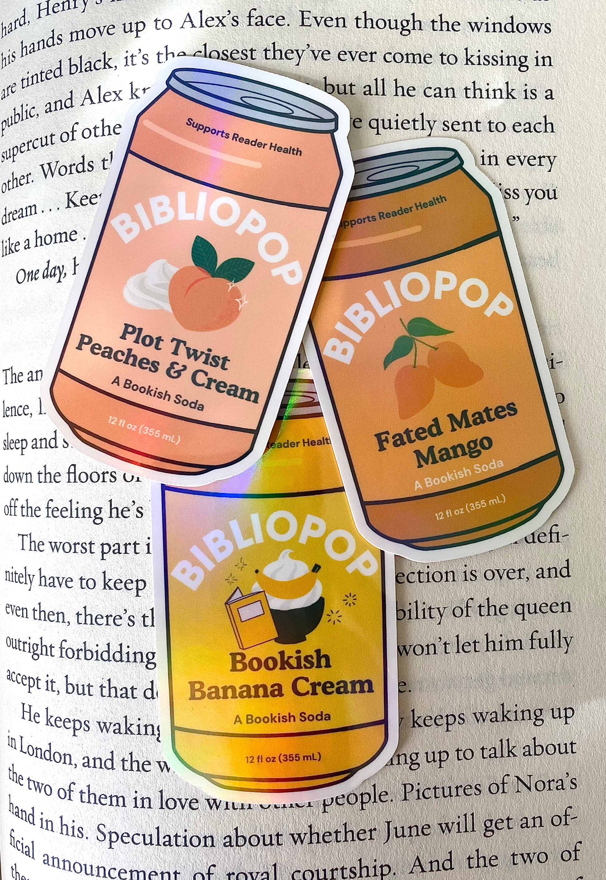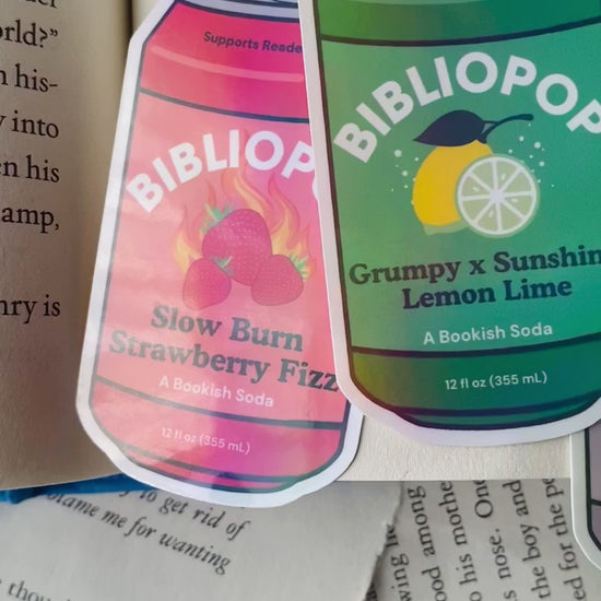 Enemies to Lovers? Slow Burn? Why Choose? Celebrate your trope of choice with BIBLIOPOPS™, a new kind of bookish soda sticker! Perfect for your kindle, water bottle, or anywhere else you want to rep your favorite book trope (or tropes).